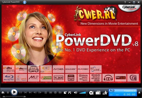 CyberLink PowerDVD - один из самых лучших современных программных проигрывателей, позволяющий осуществлять интерактивный просмотр дисков DVD-Video и Video CD на вашем компьютере. К основным достоинствам данного проигрывателя можно отнести высокое качество изображения, удобный интерфейс со скинами и хорошую настраиваемость. Кроме просмотра фильмов с компакт-дисков (DVD и Video CD), PowerDVD позволяет проигрывать файлы форматов, поддерживаемых Windows Media Player, а также MPEG1 и MPEG2. В программе также имеются функции захвата кадров в файл формата BMP, повтора участка записи, регулировки параметров отображения, запоминания момента остановки, поддержки колеса прокрутки мыши и многие другие возможности. С помощью функции Movie Collection вы можете создавать собственный каталог вашей коллекции фильмов, храня рецензии, личные примечания, информацию об обложке фильма, а также обмениваться этими данными с другими пользователями с помощью сервиса MoovieLive.