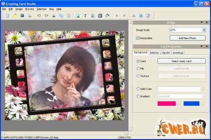 Программа для создания поздравительных открыток. Модуль Card Wizard позволяет быстро создавать профессиональные открытки с анимацией, звуком и т.д..
