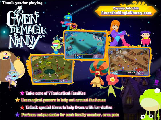 Вы будете играть за Гвен - Волшебную Няню. После того, как ее наградили статусом - лучшая нянька города, спрос на услуги Гвен внезапно возрос. Вам предстоит обслуживать разнообразных волшебников, оборотней, роботов в прекрасном городе - Fantasy Town. Помогите Гвен заботиться о младенцах, подростках и домашних животных, каждый из которых обладает собственными потребностями.
