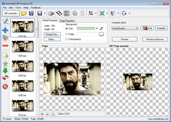 Animated GIF Producer - это быстрая и легкая в использовании программа для создания различных анимаций, кнопок и баннеров, которые потом могут быть размещены на вашем веб-сайте. Вам больше не нужно тратить деньги на покупку комплексных видео обрабатывающих платформ для того, чтобы создать простую анимацию в формате GIF. С помощью данной программы вы сможете с легкостью создать GIF анимацию, кнопку или баннер для вашего сайта за считанные минуты. Интерфейс программы построен таким образом, что все функции программы находятся всегда рядом, когда они вам могут понадобиться. Вы сможете добавлять и обрабатывать изображения, организовывать их в последовательности и многое другое. Программа позволяет добавлять изображения напрямую из буфера обмена. Для этого также существует функция захвата экрана для снятия скриншотов из видео файлов. Вы также сможете экспортировать GIF анимацию в видео формат AVI.