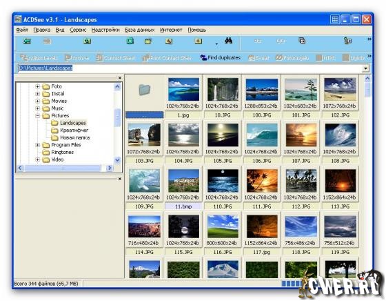 ACDSee — мощный органайзер и вьювер графики. Программа включает просмоторщик файлов форматов BMP, DCX, PCX, JPEG, GIF (в том числе и анимированный), PIC, PNG, PSD, PCD, TGA, TIFF и WMF и многие другие (всего около 50 форматов). Позволяет производить поиск, в том числе и дубликатов с их последующим сравнением. Умеет производить запись на оптические носители, создавать фотоальбомы, слайд-шоу, имеет функции конвертации, редактирования и многое другое. Поддерживается работа со сканерами и цифровыми камерами.
