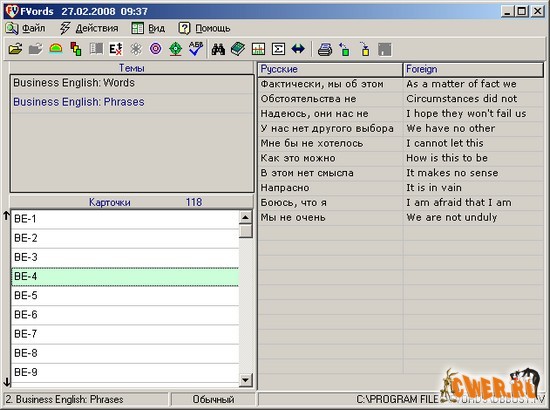 FVords - программа для изучающих английский и немецкий: советы Longman, тесты, словари к подлинникам, параллельные тексты, режим суфлера, настройка, поиск, печать, статистика и многое другое...