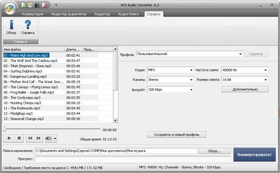 AVS Audio Converter - программа для преобразования аудио файлов из одного формата в другой. Поддерживает конвертирование WAV, OGG Vorbis, MP3, MP2, Microsoft ADPCM, WMA, VOX, AAC, M4A, AMR и других аудио форматов. До процесса преобразования программа определяет частоту, число каналов и другие параметры аудио файлов. Кроме этого, AVS Audio Converter позволяет задавать настройки параметров для MP3 и форматов OGG при преобразовании аудио-файлов и изменять информацию в тэгах. Дружественный и удобный интерфейс, расширенная поддержка форматов, которые предлагает AVS Audio Converter, превратят в удовольствие рутинную операцию конвертации аудио.