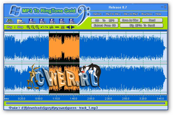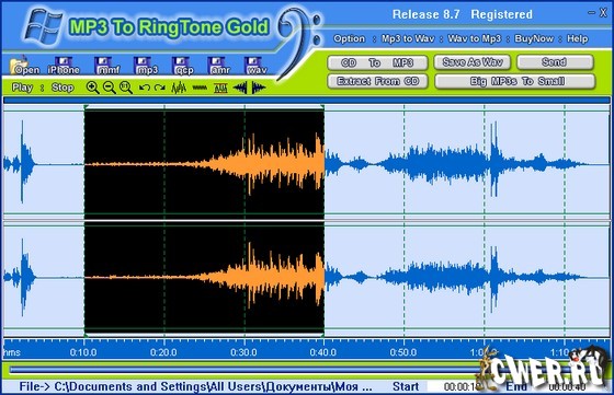 MP3 To Ringtone Gold – программа, предназначена для конвертирования и обрезки музыкальных файлов и создания рингтонов для мобильных телефонов. Вы сможете "грабить" по нескольку аудио-дисков за раз, уменьшать размеры mp3 для последующей отправки на мобильный, переконвертировать часть понравившегося вам трэка в рингтон.