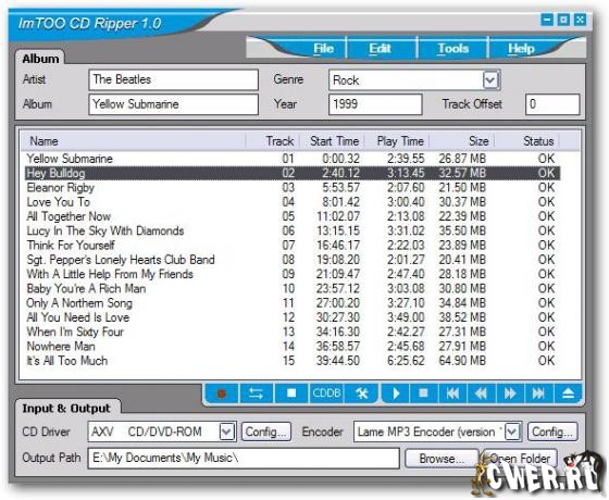 ImTOO CD Ripper - программа для быстрого извлечения трэков с музыкальных CD и конвертации их в форматы MP3, WAV, WMA, OGG Vorbis, VQF или APE. Утилита обладает очень простым интерфейсом, позволяет начать процесс перезаписи одним кликом мыши, поддерживает работу с CDDB. При кодировании можно выбрать необходимый битрейт. Имеется редактор ID3 тэгов, опция нормализации звука и многое другое.