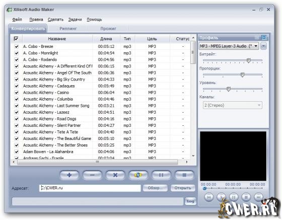 Xilisoft Audio Maker - это многофункциональная программа - аудио конвертер, риппер музыкальных CD и программа для записи аудио CD дисков. С данной программой вы сможете конвертировать, извлекать треки - rip , и записывать музыкальные CD легко, быстро, с превосходным качеством. Сравнивая с другими продуктами этого класса, отметим, что Xilisoft Audio Maker имеет большее количество функций и характеристик.