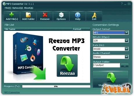 Reezaa - легкий в использовании конвертер работающий по принципу "всё-в-MP3". При помощи Reezaa Вы можете конвертировать любой аудио- или видефайл в MP3-формат.