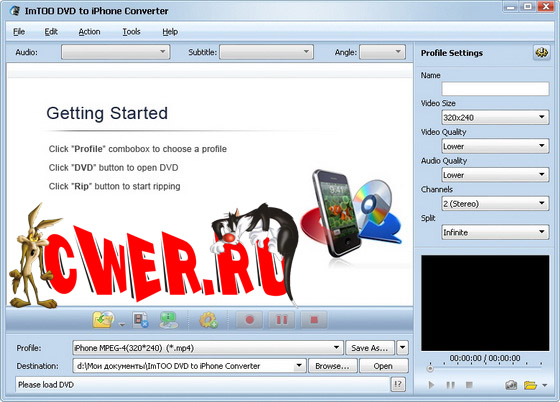 ImTOO DVD to iPhone Converter - конвертор видео DVD в форматы для iPhone Video. Особенностью данной программы является поддержка MP4, MPEG-4 форматов, извлечение аудио в MP3, WAV, M4A форматы, настройка параметров конвертирования, предварительный просмотр видео, высокая скорость и высокое качество, нормализация аудио качества, простой и удобный интерфейс.