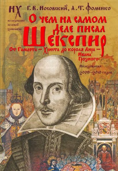 Все результаты, излагаемые в книге, получены недавно, являются новыми и публикуются впервые. Новая Хронология бросает новый и неожиданный свет на замечательные произведения Шекспира. Оказывается, такие знаменитые пьесы, как «Гамлет», «Король Лир», «Макбет», «Тимон Афинский», «Генрих VIII», «Тит Андроник», основаны на реальных событиях XII—XVI веков, развернувшихся в Великой Империи.