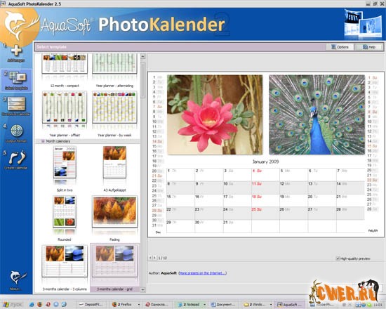 AquaSoft PhotoKalender одна из самых мощных программ для создания календарей. Можно создавать ежегодный, ежемесячный, еженедельный и даже ежедневный календарь. Программа имеет большое количество встроенных шаблонов, а также редактор, в котором вы можете изменить существующий шаблон или создать свой собственный.