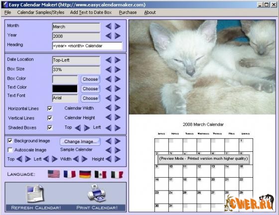 TKexe Kalendar 1.0.9.0 программа для создания календарей любого размера.