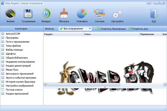 Wise Registry Cleaner - бесплатная версия безопасной утилиты для чистки реестра Windows. Программа сканирует реестр и ищет в нем некорректную и устаревшую информацию, после удаления которой операционная система работает более быстро. После того, как программа проанализирует проблемы вашей системы, вы можете сами просмотреть каждую найденную неполадку и посмотреть ее детальное описание. Имеется возможность автоматической корректировки таких проблем. Все изменения, внесенные программой в реестр, могут быть отменены за два клика мышью. Также стоит отметить, что интерфейс программы переведен на множество языков, включая русский язык.