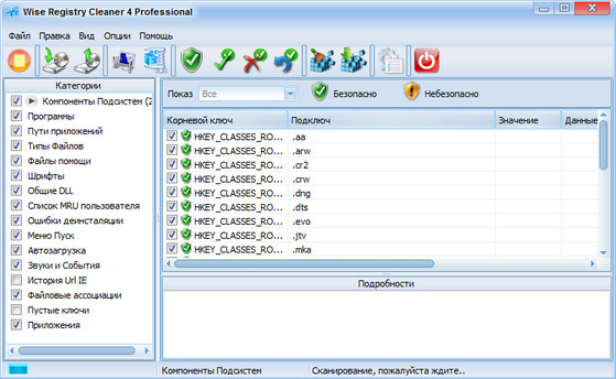 Wise Registry Cleaner Pro - профессиональная версия безопасной утилиты для чистки реестра Windows. Программа сканирует реестр и ищет в нем некорректную и устаревшую информацию, после удаления которой операционная система работает более быстро. После того, как программа проанализирует проблемы вашей системы, вы можете сами просмотреть каждую найденную неполадку и посмотреть ее детальное описание. Имеется возможность автоматической корректировки таких проблем. Все изменения, внесенные программой в реестр, могут быть отменены за два клика мышью. Также стоит отметить, что интерфейс программы переведен на множество языков, включая русский язык.