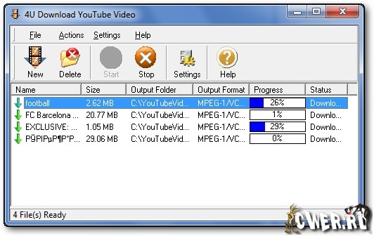 Программа 4U Download YouTube Video предназначена для загрузки видео с YouTube и может сохранять файлы в различных видео-форматах, таких как MPEG, AVI, DivX, XviD, MP4, 3GP, WMV, ASF, MOV, QT, VOB и т.д.