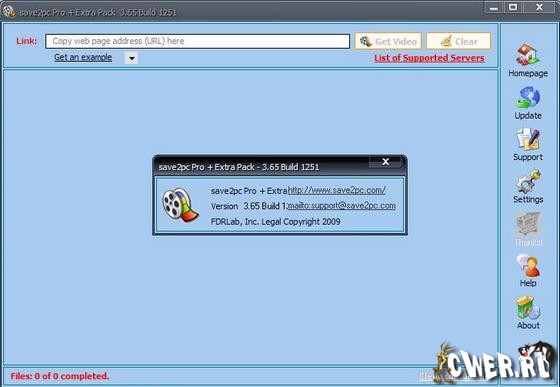 Обновилась программа Save2pc. Это крайне простая в использовании утилита, которая позволяет сохранять видео с известного файлового хранилища YouTube и Google Video. Просто вставьте ссылку на нужный файл в окошке программы, укажите папку для сохранения видео, а все остальное save2pc сделает сама, вы же в результате получите интересующий вас .avi, .mpeg, .flvG файл или файл в мобильном формате mov, mp4, 3gp, mp3, wav.