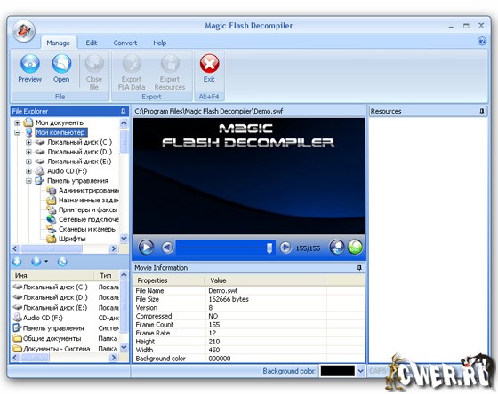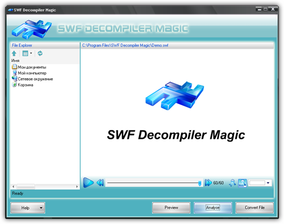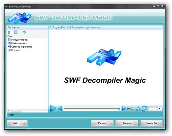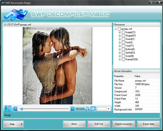 SWF Decompiler Magic - мощная программа для конвертации флэш-файлов между форматами SWF и EXE, редактирования SWF роликов (динамические тексты, изображения и многое другое).