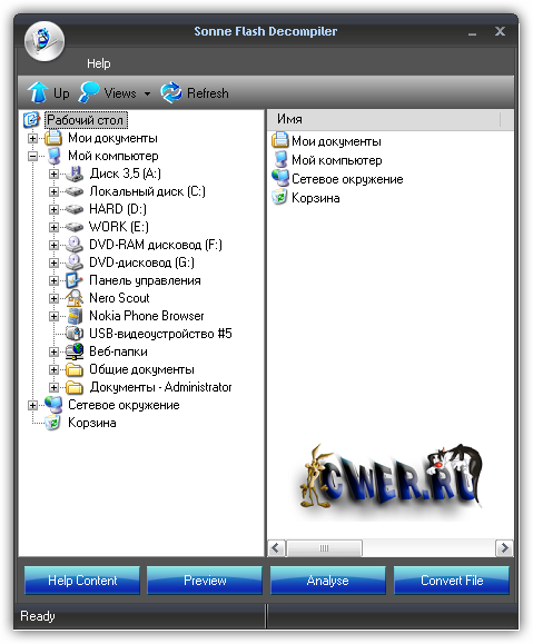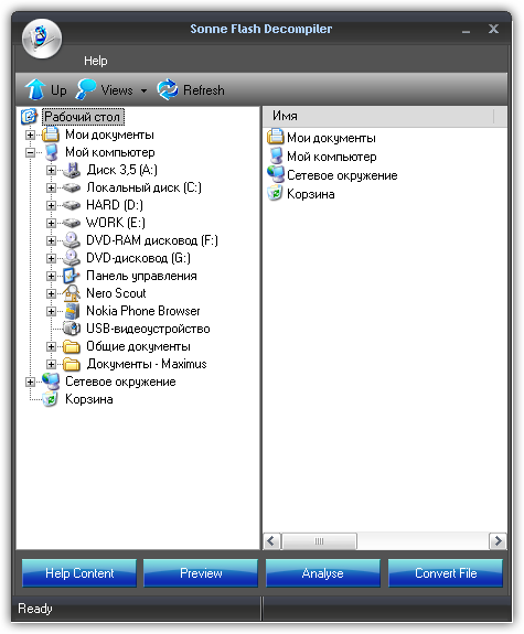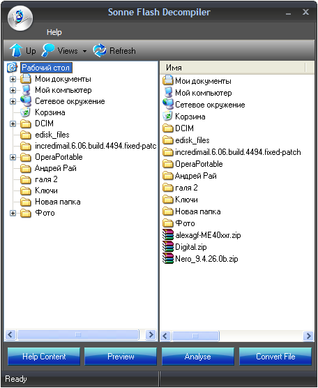Sonne Flash Decompiler - мощная программа для флеш, позволяющая преобразовывать файлы между форматами SWF и EXE, а также позволяющая редактировать ролики в формате SWF. С помощью данной программы вы сможете редактировать текст, шрифты, картинки, звуки, формы, сценарии и другие элементы, находящиеся в флеш - файле.