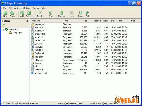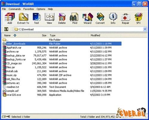 WinRar - один из самых известных архиваторов. То, что он поддерживает архивацию в формате RAR, это, вероятно, обьяснять не надо. Кроме того, программа умеет работать с архивами ZIP, CAB, ARJ, LZH, TAR, GZ, ACE 2.0, BZIP, JAR, UUE, GZIP, BZIP2 и 7-Zip, ISO, при этом она обладает многочисленными очень полезными возможностями - шифрование, поддержка непрерывных (solid) архивов, в которых степень сжатия может быть на 10 – 50% больше, чем при обычных методах сжатия, специальный алгоритм для сжатия мультимедийных файлов (с помощью которого можно добиться еще большей степени сжатия мультимедиа-файлов), поддержка многотомных архивов, умеет создавать SFX-архивы с задаваемым текстом в окне и заголовке окна, паролить архивы и многим другим.