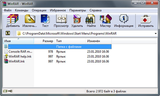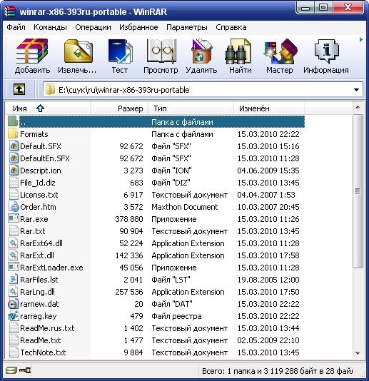 WinRAR - один из самых известных архиваторов. То, что он поддерживает архивацию в формате RAR, это, вероятно, обьяснять не надо. Кроме того, программа умеет работать с архивами ZIP, CAB, ARJ, LZH, TAR, GZ, ACE 2.0, BZIP, JAR, UUE, GZIP, BZIP2 и 7-Zip, при этом она обладает многочисленными очень полезными возможностями - шифрование, поддержка непрерывных (solid) архивов, в которых степень сжатия может быть на 10 – 50% больше, чем при обычных методах сжатия, специальный алгоритм для сжатия мультимедийных файлов, поддержка многотомных архивов и многим другим.