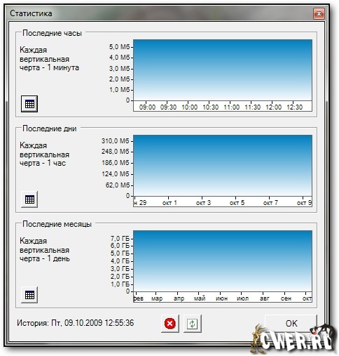NetWorx - бесплатная утилита для учета интернет-трафика и мониторинга скорости Интернета на вашем компьютере. Программа работает с любым кабельным или беспроводным подключением, а также модемом, предоставляя удобную статистику, отчеты и графики. Вы сможете измерить реальную скорость и загрузку вашего интернет-подключения, просматривать ежедневные, недельные и месячные отчеты и получать уведомления о перерасходе трафика. Интересным применением NetWorx можно назвать и контроль за сетевой активностью ПК. Если объём трафика вдруг возрос - скорее всего, в системе поселился вирус или троян.