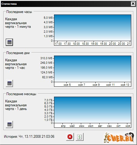 BWMeter - лучшая из утилит для подсчета трафика. Настраиваемые фильтры для разделения трафика по портам и ip-адресам. И в то же время очень простой интерфейс. Программа по умолчанию разделяет трафик на локальный и интернетовский, что и требуется в 90% случаев. Умеет выводить графики по каждому из фильтров. Показывает отчеты за день, неделю, месяц и год. Благодаря гибкости настроек может быть использована для подсчета трафика каждого из нескольких компьютеров, находящихся в одной сети, будучи установленной только на одном из них (зависит от конфигурации сети)