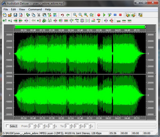 AudioEdit Deluxe - мощный аудио редактор и конвертор, поддерживающий множество операций. Может конвертировать CD, MP3, WAV, WMA, и OGG. Также может открывать, создавать, проигрывать и записывать аудио данные; производить смешивание и усиление звуков; вставлять различные звуковые эффекты и многое другое.