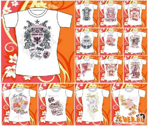 100 эскизов в векторном формате EPS для нанесения изображений на футболки + превью