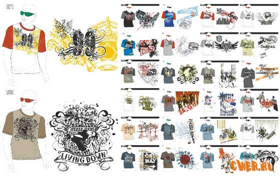 58 Эскизов в векторном формате EPS для нанесения изображений на футболки + превью