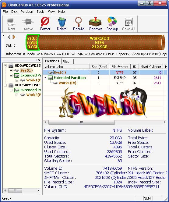 DiskGenius Pro - мощный инструмент для управления разделами на жестком диске, может создавать, удалять, скрывать, форматировать, изменять размеры разделов и восстановить утраченные таблицы разделов и создавать/восстанавливать бэкапы. Позволяет вам настраивать каждый параметр в таблице разделов. Кроме того, DiskGenius предоставляет ряд других полезных функций, таких как резервного копирования таблицы разделов, восстановить MBR (Master Boot Record), и многое, многое другое.