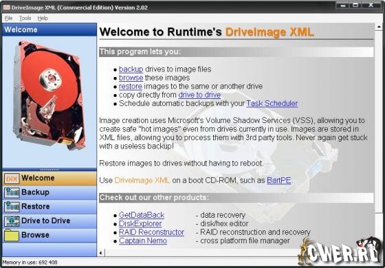 DriveImage XML – мощное решение для создания образов раздела жесткого диска. Главным плюсом программы является возможность копирования текущей инсталляции Windows без необходимости перезагружать компьютер. На выбор позволяется сделать побайтовую копию раздела либо добавить только используемое файлами пространство. Результирующий файл можно сжать или разбить на части. Кроме того, позволяется сделать резервную копию прямо на другой раздел диска. Восстановление системы осуществляется двумя способами – либо путем подключения DriveImage XML в качестве плагина для диска BartPE, либо с помощью загрузки в систему, установленную на другом диске. DriveImage XML является одной из единственных программ, которые позволяют не только создавать, но и открывать сохраненные образы, с возможностью извлечения, запуска и просмотра встроенной утилитой любых файлов, а также с поиском по архиву.