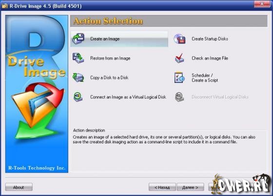 R-Drive Image является эффективной утилитой для создания файлов образа диска и резервного копирования данных. Файл образа диска, содержащий точную, "байт в байт" копию жесткого диска, раздела или лигического диска, может быть создан без перезагрузки компьютера и с различным уровнем сжатия данных. Созданный образ диска может быть сохранен на носителях различного вида, включая такие съемные носители, как CD-R(W)/DVD, Iomega Zip и Jazz диски.
