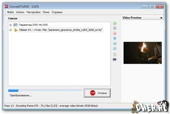 ConvertXtoDVD - программа предназначена для преобразования видео в формат, совместимый с DVD Video, и последующей записи содержимого на DVD. Программа поддерживает видеофайлы Mpeg, Mpeg4, MP4, VOB, WMV, DV, AVI, а также потоковое видео. Для работы программы не нужны внешние AVI-кодеки, поскольку она использует собственные. ConvertXtoDVD может автоматически создавать фрагменты (chapters), поддерживает наличие нескольких аудиодорожек, работает с субтитрами (.SRT .SUB/IDX .SSA). Также программа поддерживает создание несложного меню для DVD, в котором можно установить фон, выбрать цвет и другие параметры шрифта для надписей.