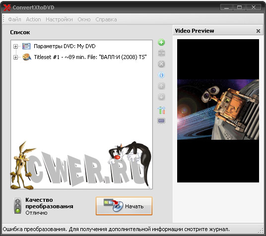 ConvertXtoDVD - программа предназначена для преобразования видео в формат, совместимый с DVD Video, и последующей записи содержимого на DVD. Программа поддерживает видеофайлы Mpeg, Mpeg, Mpeg4, MP4, VOB, WMV, DV, AVI, а также потоковое видео. Для работы программы не нужны внешние AVI-кодеки, поскольку она использует собственные.