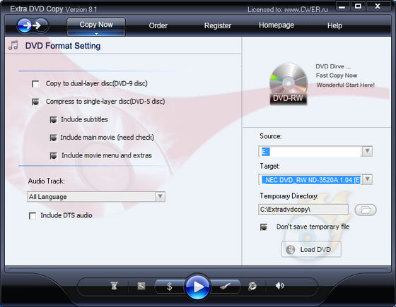 Extra DVD Copy - гибкое и удобное решение для создания копий DVD. Приятный и простой интерфейс, делает эту программу предельно понятной для любых пользователей.