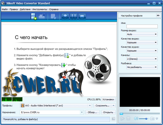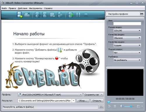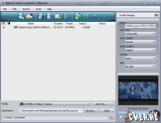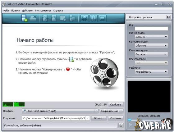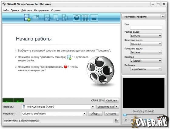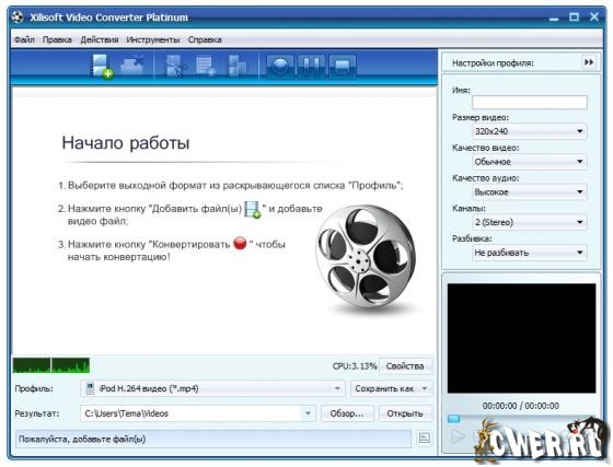 Xilisoft Video Converter - мощный и универсальный видео конвертер. Поддерживает большинство популярных видео форматов, в том числе DVD, VCD, SVCD, MOV, RM, AVI, MPEG, MPEG1, MPEG2, MPEG4, WMV, 3GP и других, извлечение аудио из видео в MP2, MP3, AC3, RA, M4A, OGG, AAC и другие форматы, пакетный режим конвертирования, предварительный просмотр во встроенном проигрывателе, выбор и настройка аудио и видео кодеков, настройка параметров конвертирования, простой и удобный интерфейс.