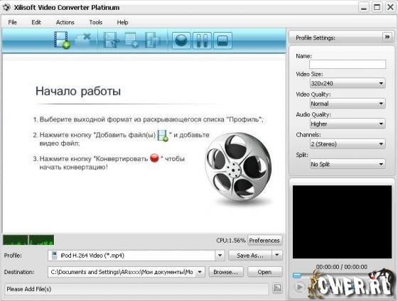 Xilisoft Video Converter Platinum - это мощный, универсальный видео конвертер. Он поддерживает большинство популярных видео форматов, в том числе DVD, VCD, SVCD, MOV, RM, AVI, MPEG, MPEG1, MPEG2, MPEG4, WMV, 3GP, h264 и т.д. Так же в нем присутствует возможность конвертирования в iPod и PSP видео.
