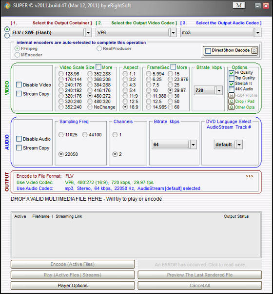 SUPER 2011 © - простая и очень эффективная бесплатная программа для конвертирования (и проигрывания) любых файлов мультимедиа без каких-либо временных или функциональных ограничений. SUPER © не требует установки никаких дополнительных модулей - все нужные кодеки уже встроены в программу.