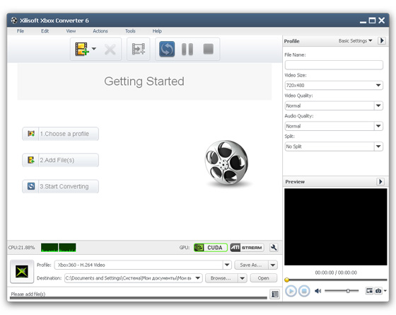 Xilisoft Xbox Converter - конвертер видео для Xbox, конвертер AVI, MPEG, WMV, MOV, MP4, RM, RMVB, DivX, ASF, VOB, 3GP, FLV и HD видео в Xbox, Xbox 360 MP4, MPEG-4 видео, извлечение аудио из видео в Xbox, Xbox 360 MP3, WMA, WAV аудио, расчет размера видео в битрейт калькуляторе, нарезка видео, соединение видео, создание JPG, PNG, BMP, GIF скриншотов, настройка параметров конвертирования, пакетный режим конвертирования, предварительный просмотр.