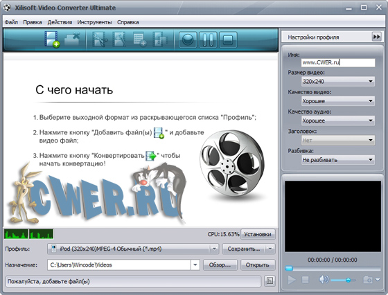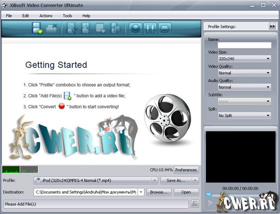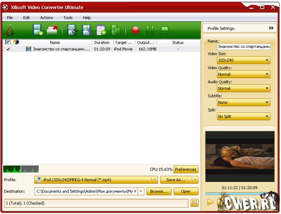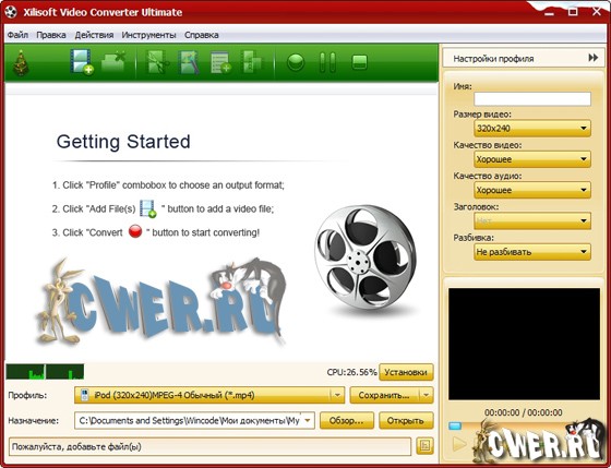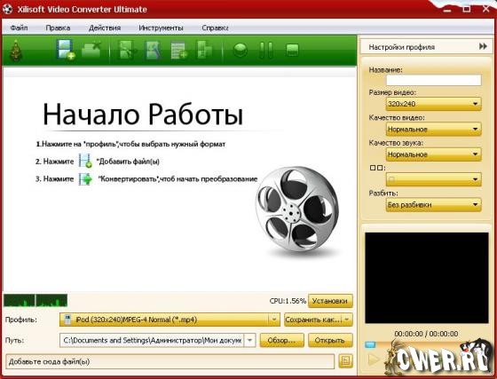 Xilisoft Video Converter - мощный и универсальный видео конвертер. Поддерживает большинство популярных видео форматов, в том числе DVD, VCD, SVCD, MOV, RM, AVI, MPEG, MPEG1, MPEG2, MPEG4, WMV, 3GP и других, извлечение аудио из видео в MP2, MP3, AC3, RA, M4A, OGG, AAC и другие форматы, пакетный режим конвертирования, предварительный просмотр во встроенном проигрывателе, выбор и настройка аудио и видео кодеков, настройка параметров конвертирования, простой и удобный интерфейс.