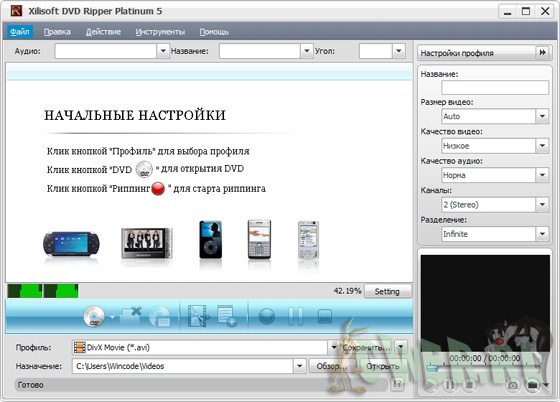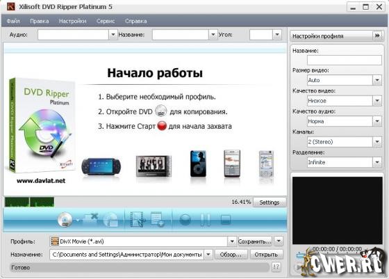 Xilisoft DVD Ripper Ultimate - мощная и удобная в использовании программа для копирования DVD-дисков с возможность конвертирования содержимого в соответствующие аудио и видео файлы типа AVI, MPEG, WMV, DivX, MP4, H.264, RM, MOV, M4V, XviD, 3GP, MP3, WMA, WAV, RA, M4A, AAC, AC3, OGG и т.д. Утилита способна создавать файлы, совместимые с iPod, iPhone, PSP, Apple TV и прочими портативными устройствами. Имеются опции конвертирования сегментов клипа, изменения размеров, наложения эффектов, добавления логотипов, предпросмотра результатов. Присутствует пакетная обработка файлов, получение информации из Интернет-баз и многие другие возможности.