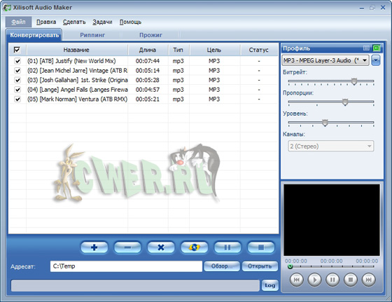 Xilisoft Audio Maker - это многофункциональная программа - аудио конвертер, риппер музыкальных CD и программа для записи аудио CD дисков. С данной программой вы сможете конвертировать, извлекать треки - rip , и записывать музыкальные CD легко, быстро, с превосходным качеством. Сравнивая с другими продуктами этого класса, отметим, что Xilisoft Audio Maker имеет большее количество функций и характеристик.