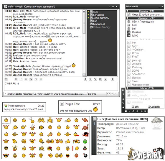 Новая тестовая версия альтернативы ICQ и MSN. В отличие от большинства других мессенджеров Miranda состоит из ядра с минимальной функциональностью и большого количества plug-in-ов, т.е. вы можете добавить только те функции, которые вам нужны.