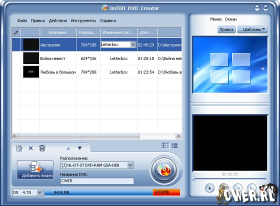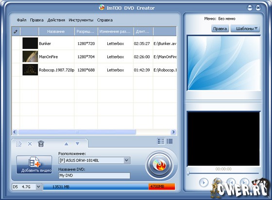 ImTOO DVD Creator - быстрый и простой в использовании конвертер DVD. Он конвертирует почти все популярные видео форматы в DVD и записывает на DVD диск. ImTOO DVD Creator также обеспечивает много гениальных меню для вашего DVD, поддерживает DVD-R, DVD+R, DVD-RW и DVD+RW. Программа простая в использовании, для того чтобы сделать свой DVD диск достаточно нажать всего на несколько кнопок!