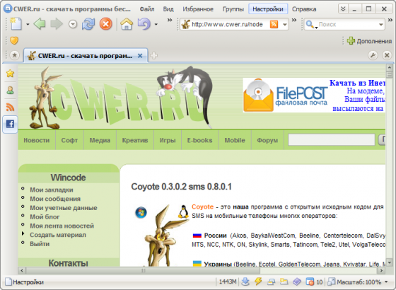 Выпущена финальная версия одного из лучших бесплатных браузеров, базирующегося на ядре Internet Explorer — Maxthon (бывший MyIE2). Поддерживая вкладки и имея собственный RSS-агрегатор, Maxthon 2.1 также обладает множеством полезных функций, значительно повышающих удобство работы с браузером: поддержку жестов мыши и продвинутого перетаскивания объектов, базы данных форм для автозаполнения, горячие клавиши и псевдонимы для адресов, группы ссылок, фильтр рекламы, средства поиска и др. Функциональность Maxthon дополнительно расширяется плагинами (доступно несколько десятков плагинов). Также Maxthon поддерживает скины.