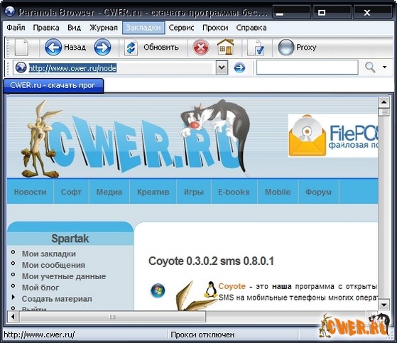 Браузер, работающий на ядре Internet Explorer. Отличная вещь - решает проблемы анонимного серфинга по интернету за счет переключения прокси-серверов, и вследствие этого избавляет от надоевшей проблемы с ограничением закачек на файлообменных серверах типа rapidshare.com.