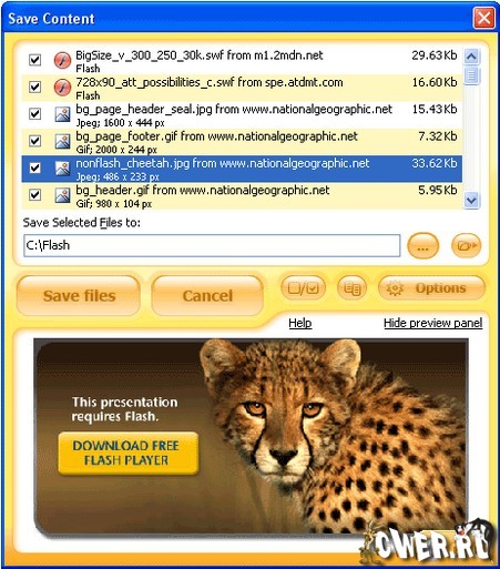 Плагин, который позволяет сохранять графические и флэш файлы с веб-страниц. Поддерживается работа с браузером Internet Explorer и построенным на его движке браузером Maxthon. После установки, программа добавляет браузеру дополнительную панель инструментов и отдельную кнопку для быстрого сохранения графики. С помощью новых инструментов, установленных в браузер, пользователь может сохранять в назначенную папку все картинки и флэш ролики с просматриваемой веб-страницы.