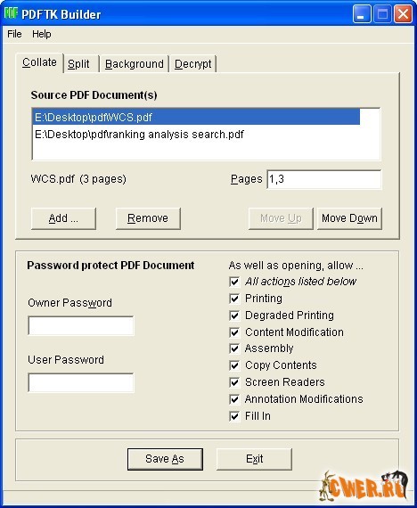 PDFTK Builder Portable является весьма удобным средством для работы с PDF-файлами. С ее помощью Вы можете легко реорганизовывать страницы в документе (менять их порядок, удалять или дублировать), делать из каждой страницы отдельный файл или, наоборот, соединять несколько PDF-документов в один...