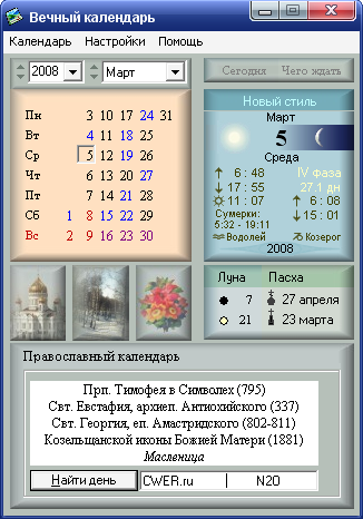 Вечный календарь, имеющий массу полезностей. Информация о праздниках и событиях любого дня до 3000 года!