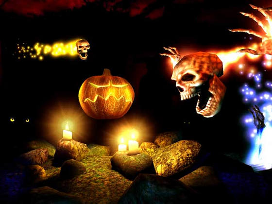 Halloween 3D screensaver – принесет атмосферу этого необычного праздника прямо на ваш рабочий стол. Хотите тыкву? Вы получите ужасающего Джека О’Лантерна в компании скелетов, черепов и сопровождении душераздирающих звуков. Вам уже страшно?