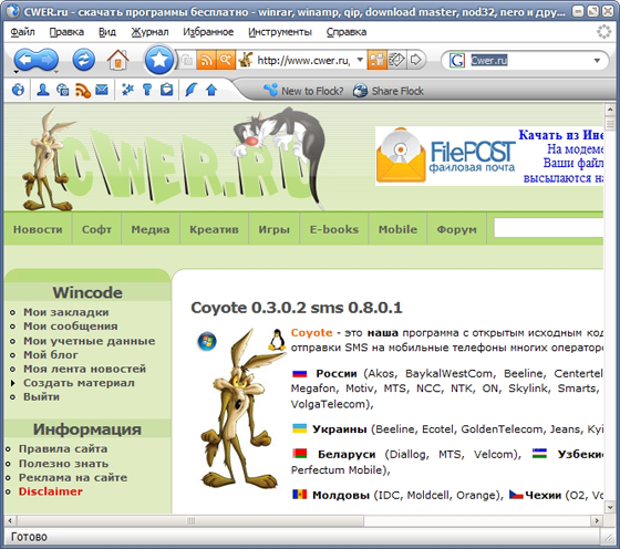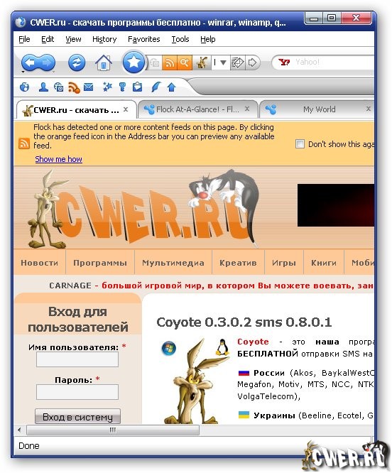 Обновился Flock - веб-браузер на базе Firefox с поддержкой самых передовых технологий - RSS, блоги, обмен фотографиями через он-лайн службу Flickr, служба закладок (возможность хранить закладки на сервере и делать их доступными другим пользователям) и многое другое...